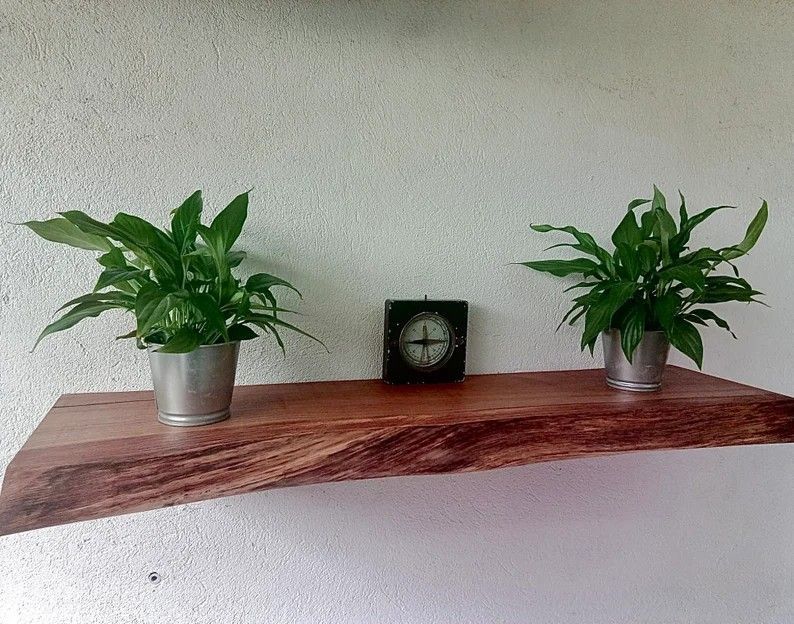 Rukou vyrobený dřevěný poliční stolek z pevného dubu s přirozeným okrajem a tloušťkou 2,5 cm.