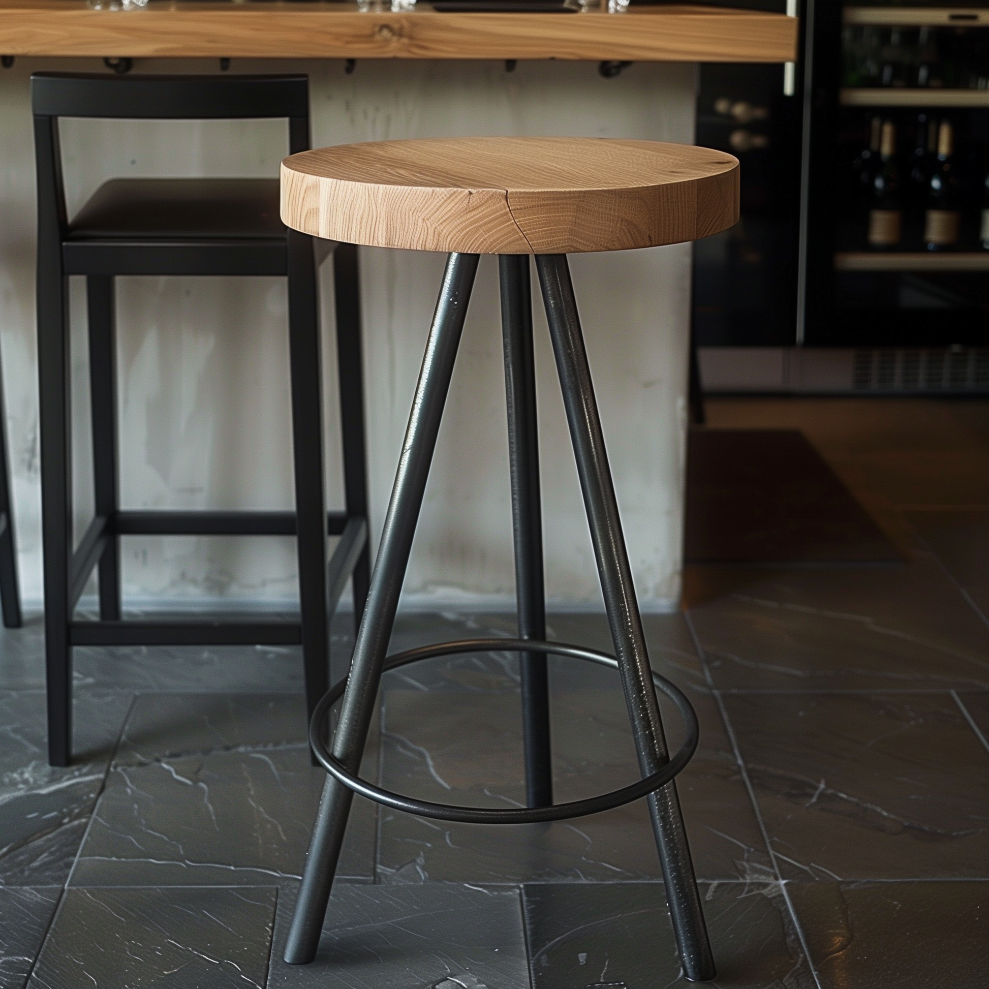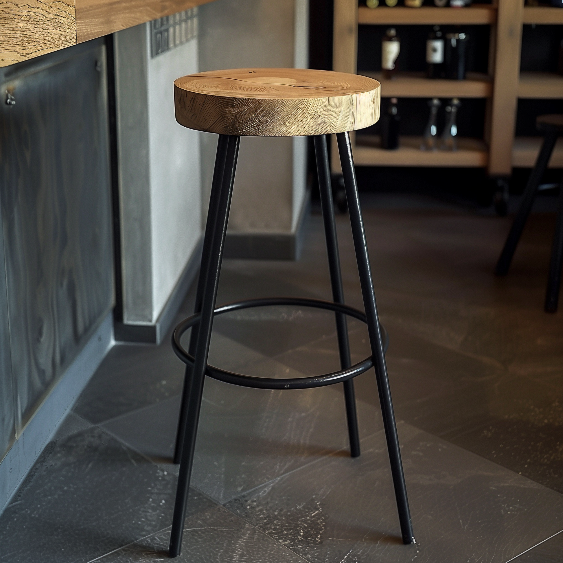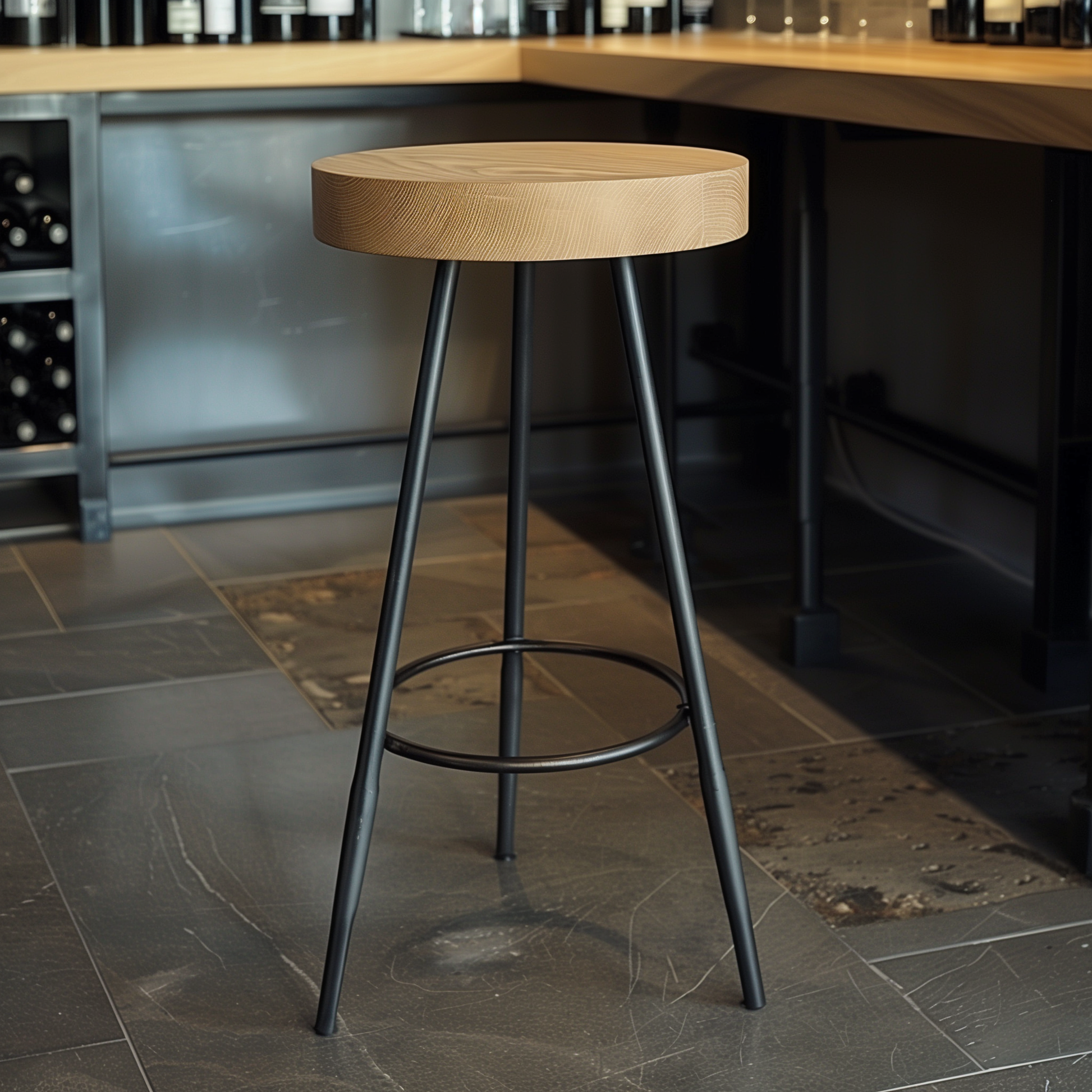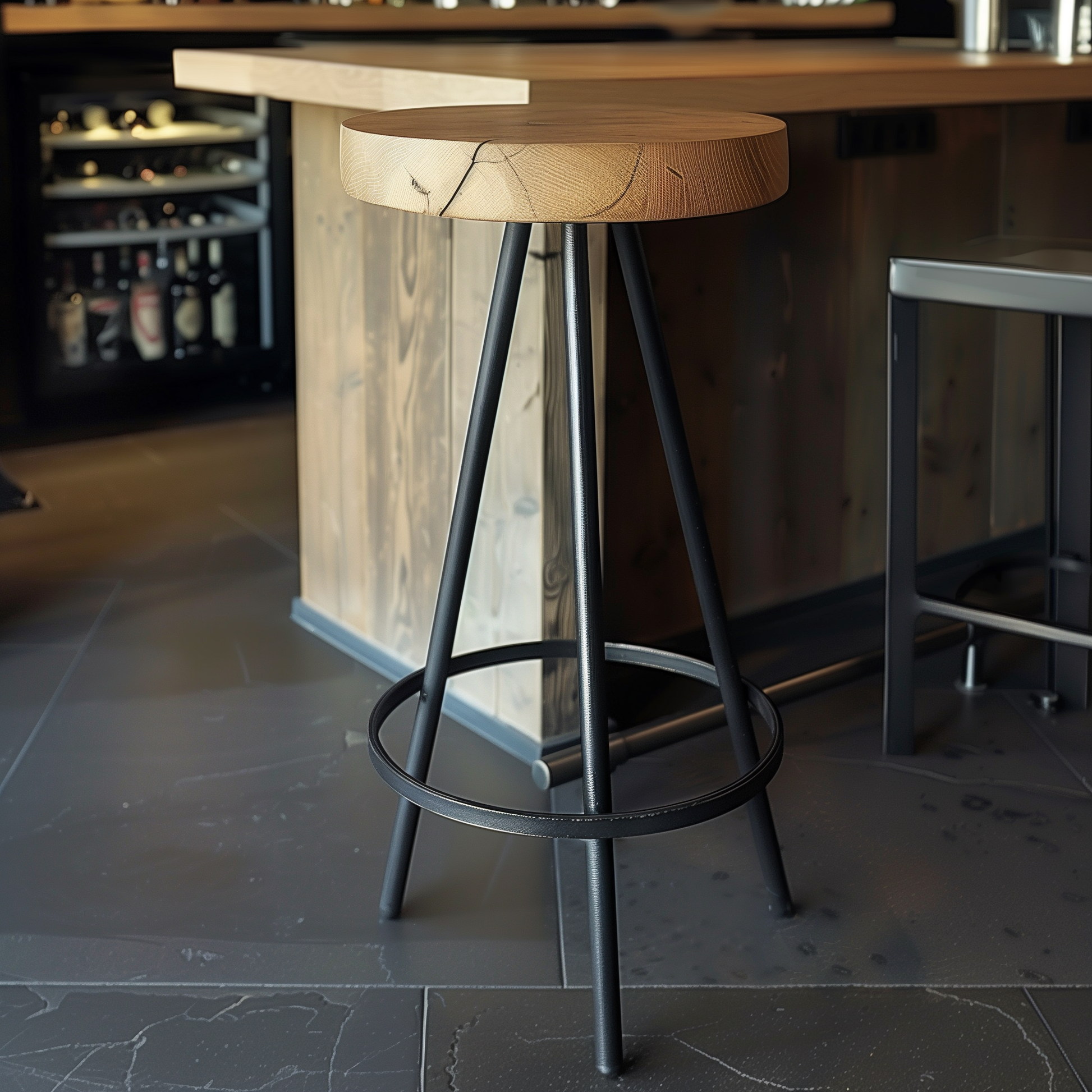 Niepowtarzalne siedzisko: lite drewno dębowe z widocznym słojami sprawia, że każdy wieszak barowy jest niepowtarzalny i niepowtarzalny.
