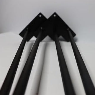 Wykonane z okrągłej stali o grubości 12 mm, zespawanej z płytą o grubości 5 mm, wstępnie nawiercone i gotowe do montażu. Nogi mają kąt około 6°, co zapewnia dodatkową stabilność.