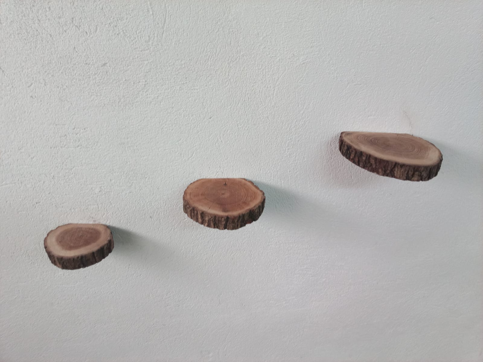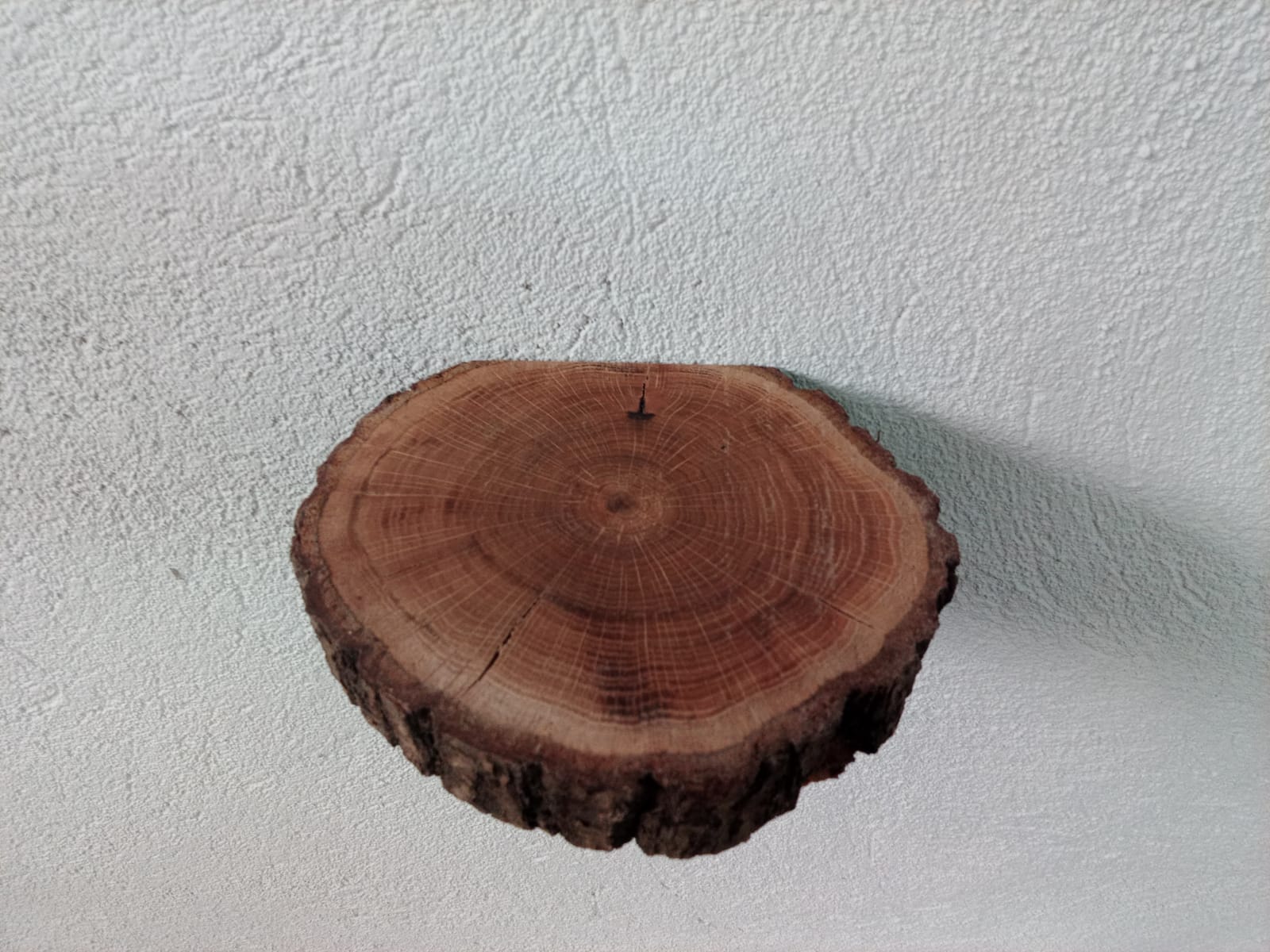 - Pień naturalnego dębu: Półka ta, wykonana z jednego kawałka litego dębu, zachowuje naturalny kształt drzewa, ukazując jego organiczne linie i fakturę.