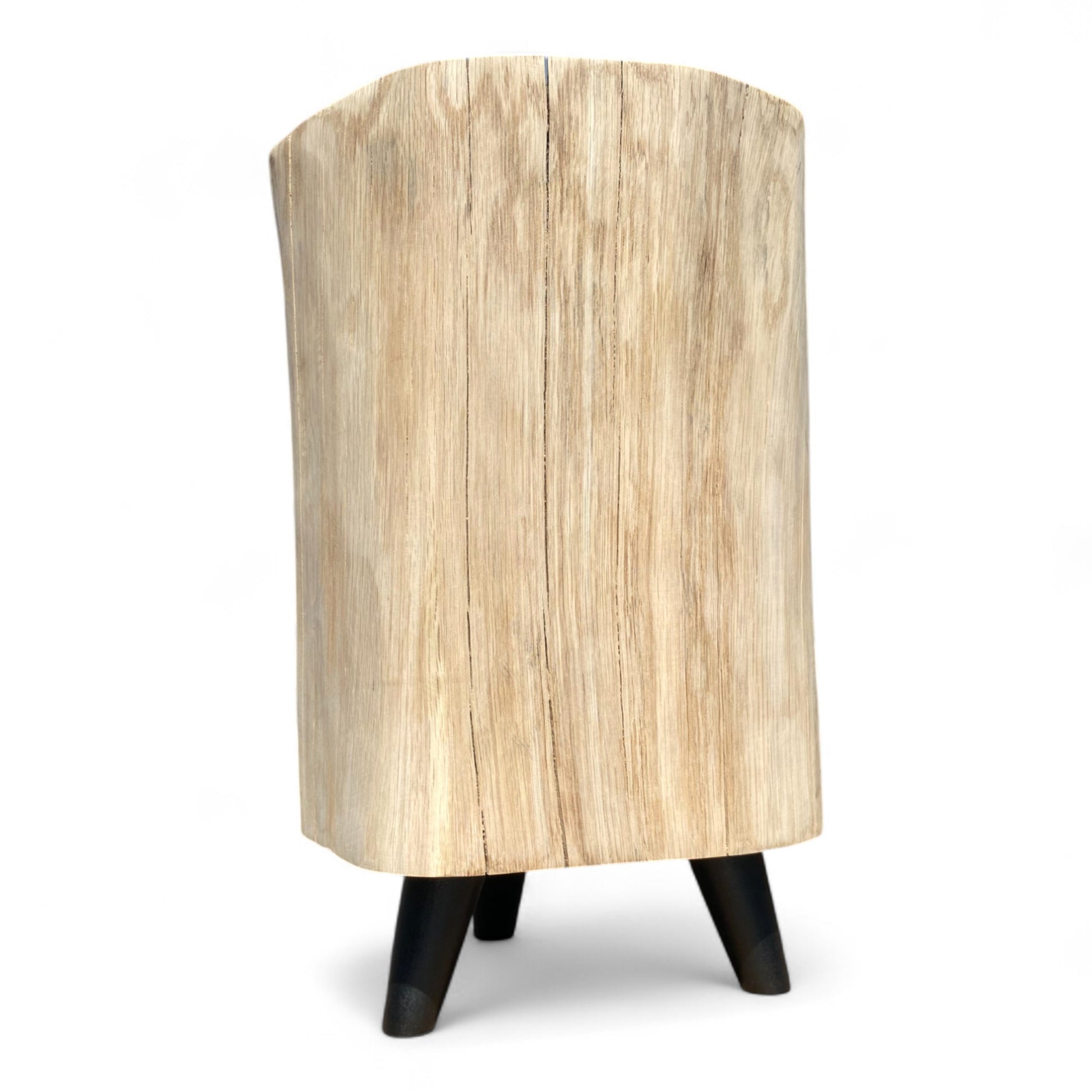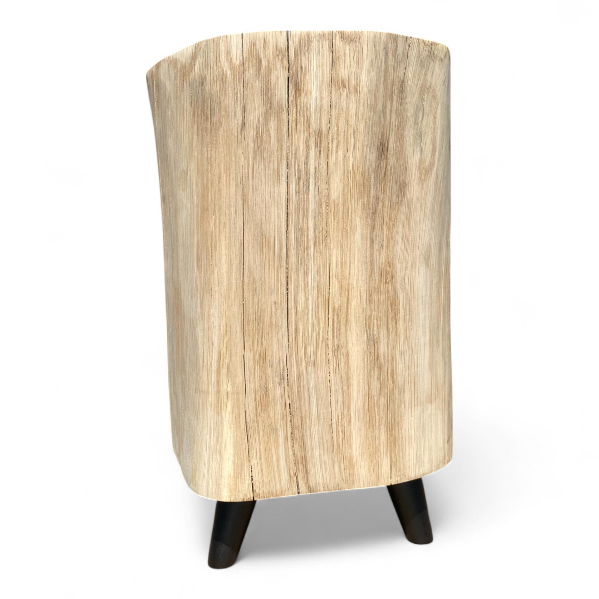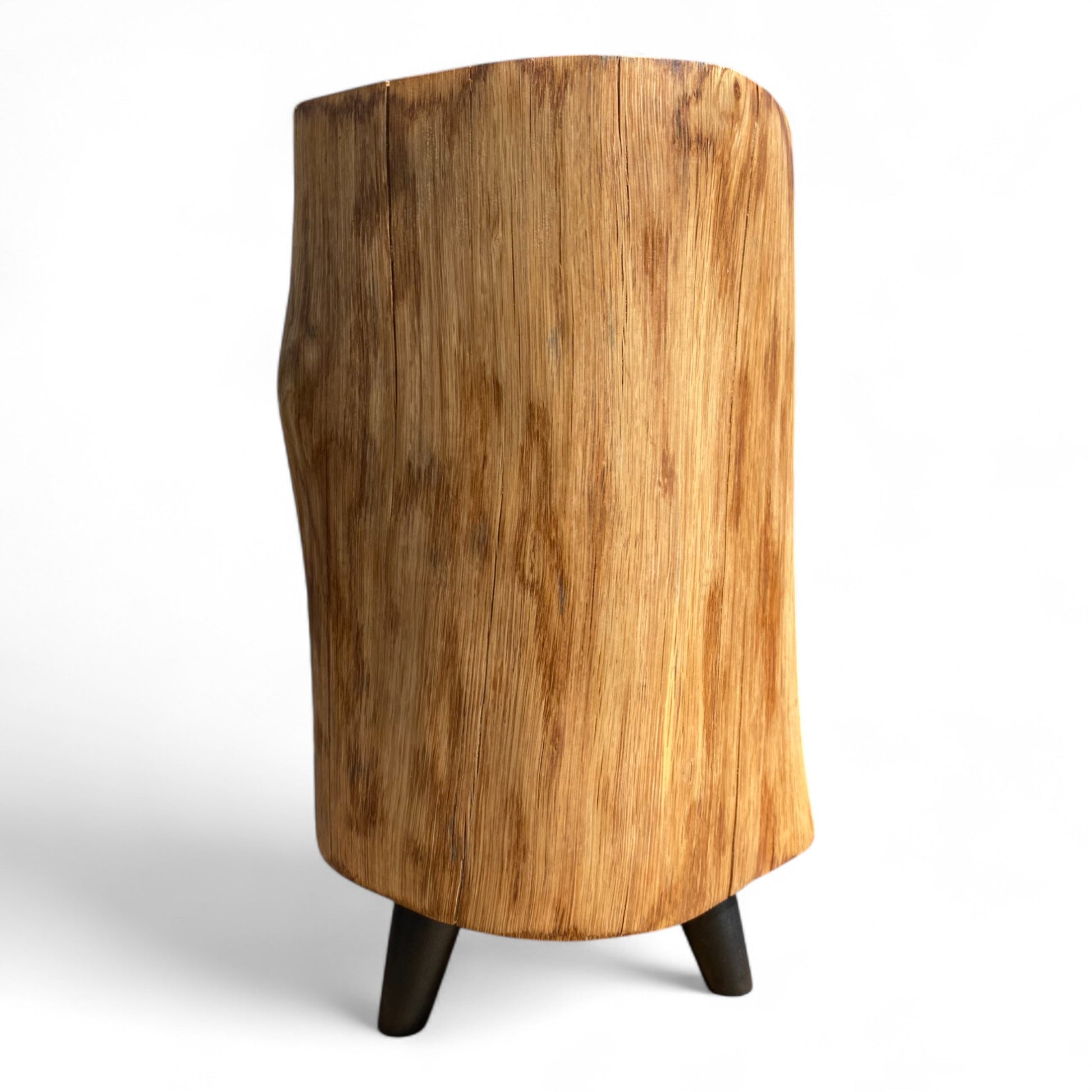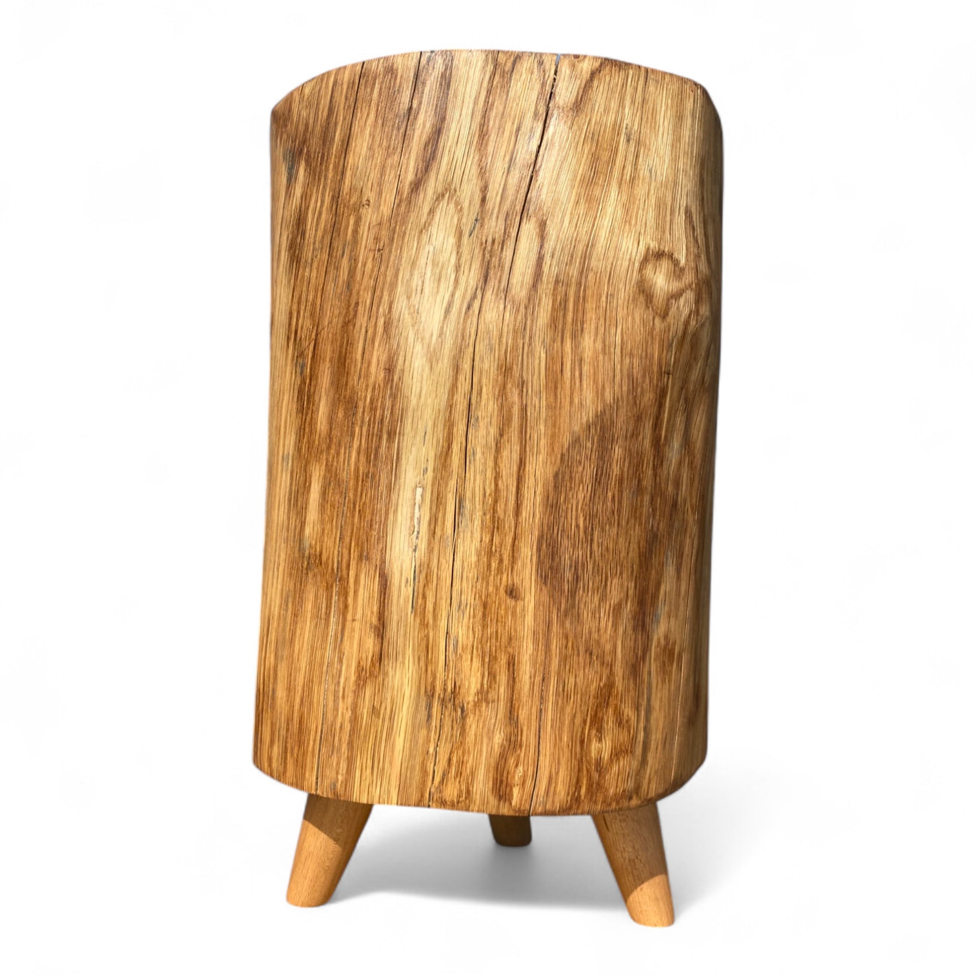 This unique coffee table is handcrafted from a solid oak log, giving it a distinct rustic charm. Each piece has its own natural variations in grain, color, and texture – no two tables are the same.