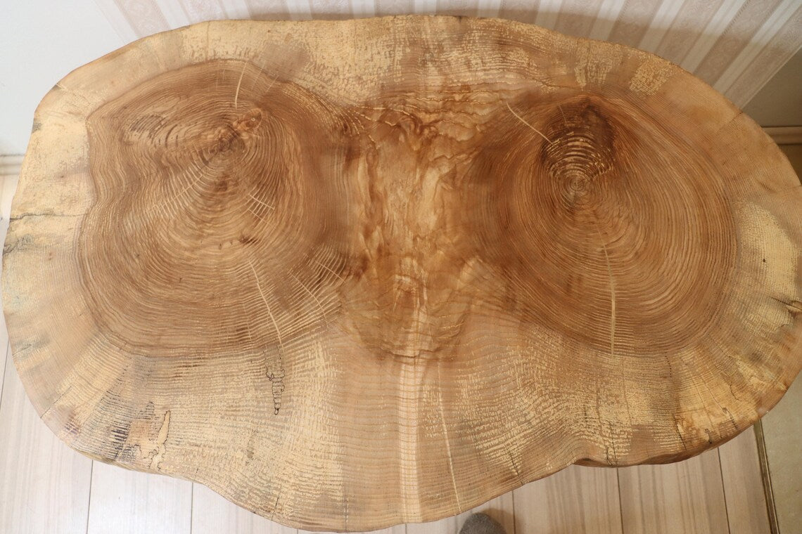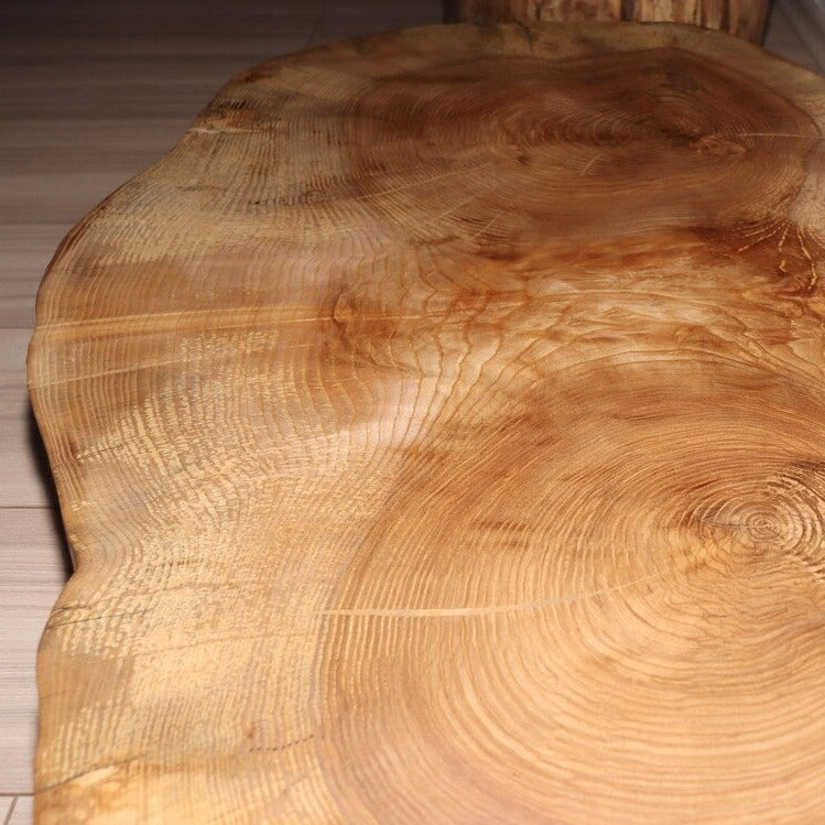 Irregular shapes and cracks are deliberately included, emphasising the natural beauty of oak wood. The distinctive grains, textures and colours of the wood give the tables a unique look and feel.